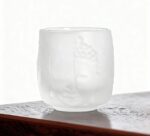 -A creative embossed glass teacup with a frosted design.