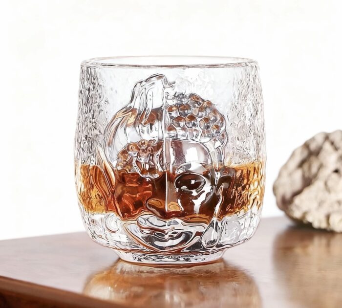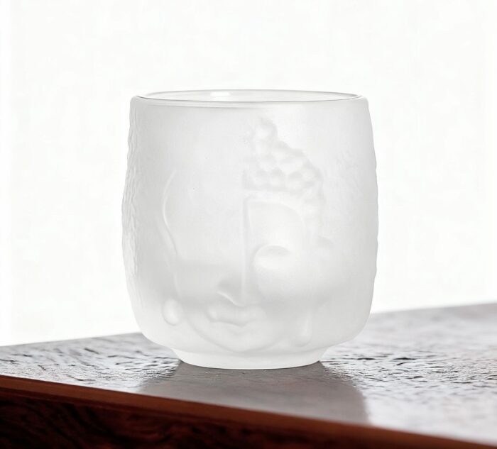 -A creative embossed glass teacup with a frosted design.